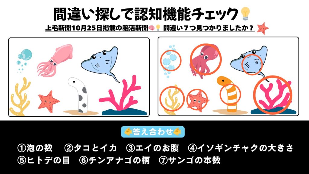 10月25日に上毛新聞の脳活新聞欄に掲載された間違え探しの答えを掲載します。