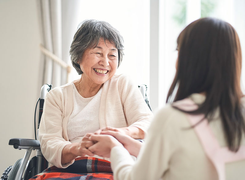 在宅での生活を続けたい方に向けて、訪問看護・訪問介護・通所リハビリなどのサービスを提供。住み慣れた環境で自立した生活が送れるよう、多職種が連携して支援します。